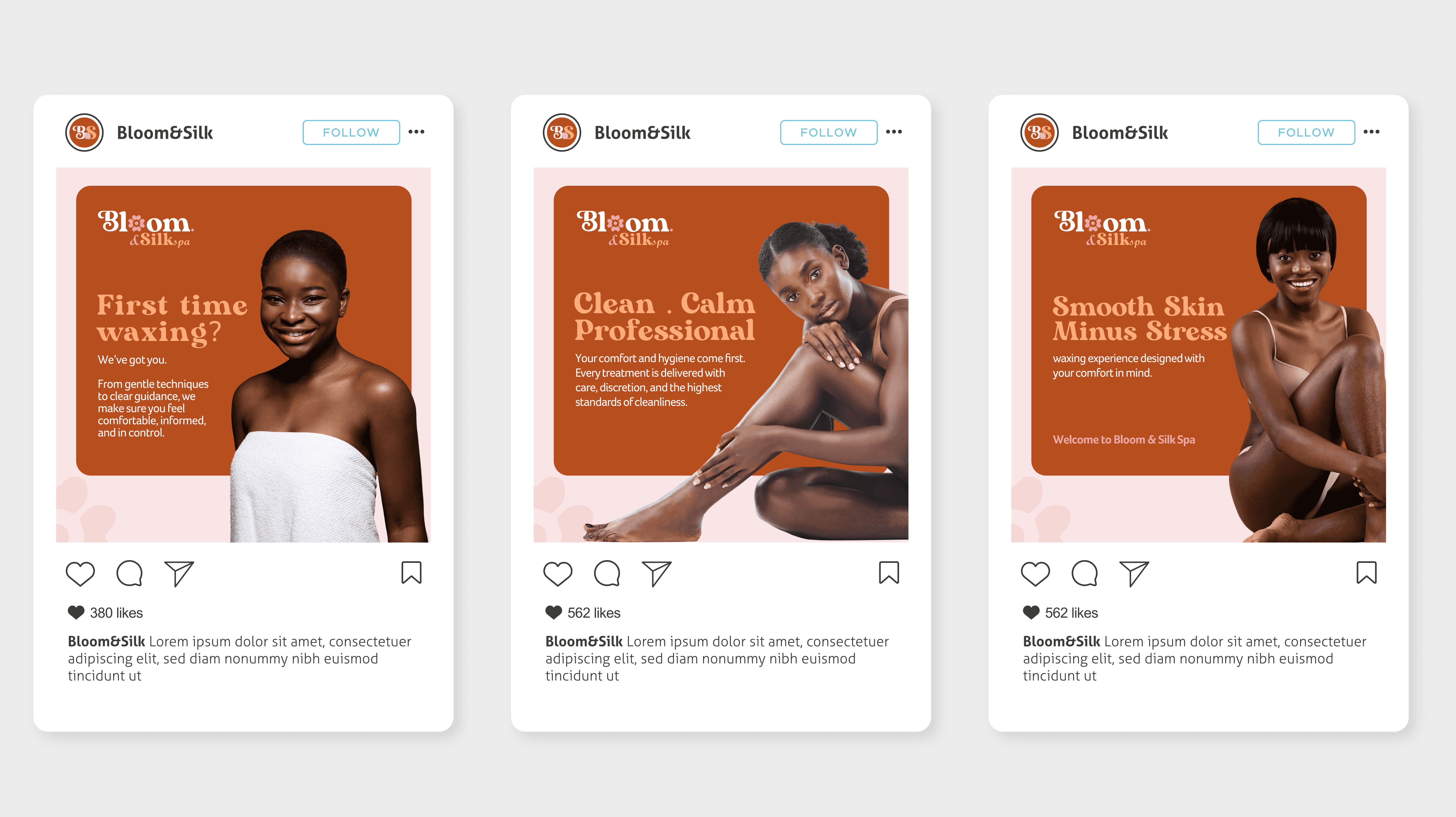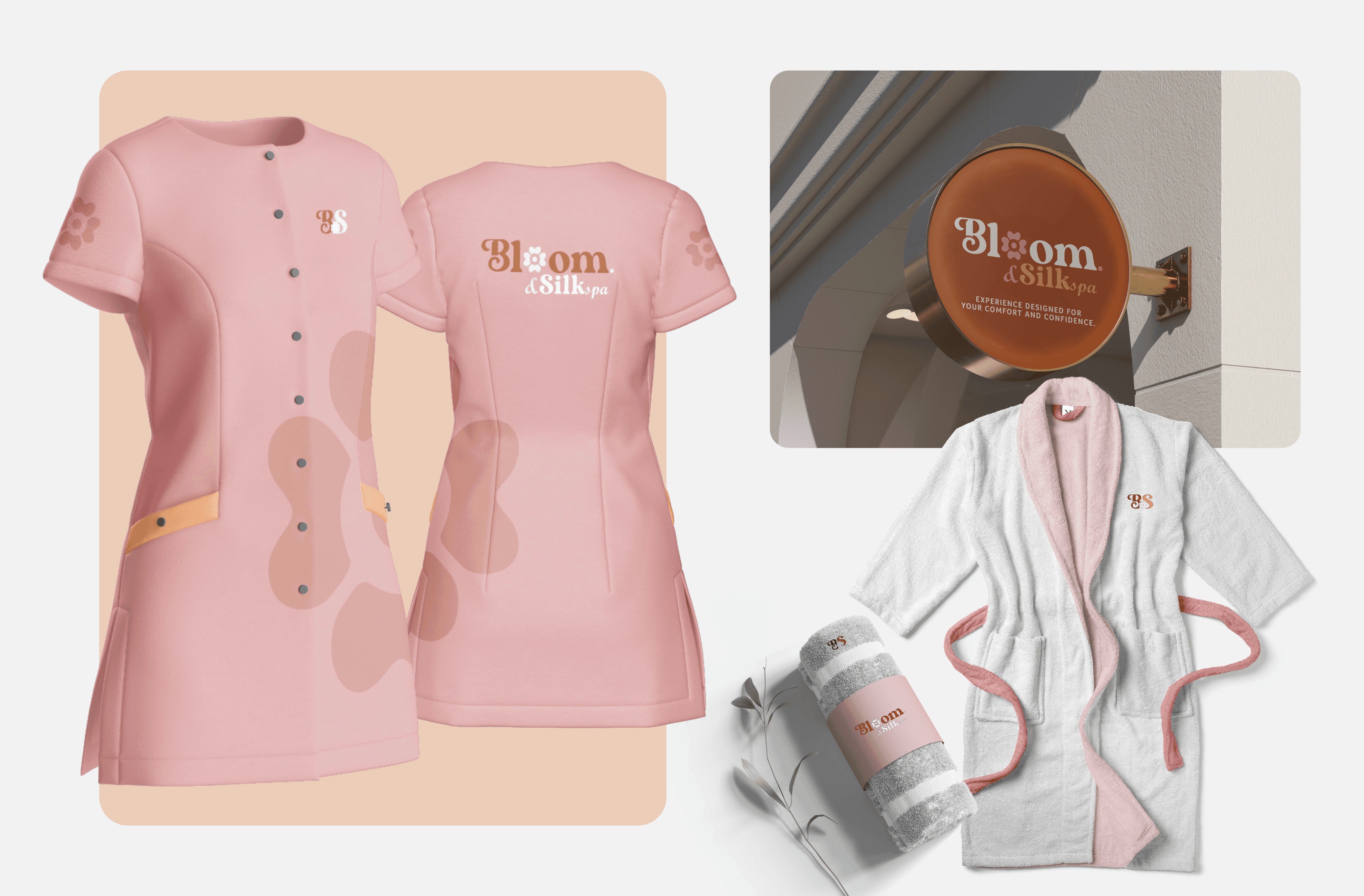 Bloom & Silk Spa now operates with a polished, consistent brand presence that reflects its promise of comfort, professionalism, and elevated care. The result is a visual system that feels calm, confident, and enduring, positioning the spa as a premium experience within its market.
